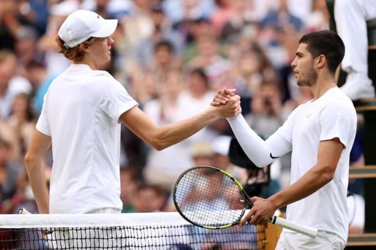 Jannik on jo voittanut Alcarazin All England Clubin keskuskentällä vuonna 2022, mikä on myös espanjalaisen viimeisin tappio Lontoon nurmella: italialainen voitti neljässä erässä 6-1, 6-4, 6-7, 6-3 ja aloitti näin huomiota herättävän ja pitkäaikaisen kilpailun. Siitä lähtien, kun italialainen palasi kentälle kolmen kuukauden tauon jälkeen, olemme jo kolmannessa finaalissa näiden kahden välillä: Alcaraz voitti Roomassa (selkeästi) ja Pariisissa.
