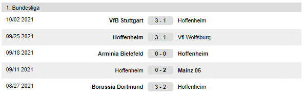 Hoffenheim legutóbbi mérkőzései: