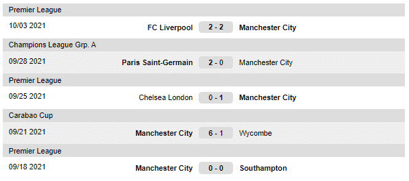 A Manchester City utolsó mérkőzései: