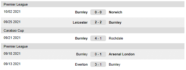 A Burnley utolsó mérkőzései:
